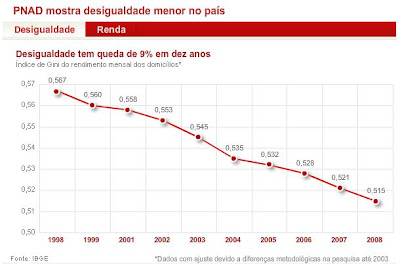 Penso que realmente a diminuição da desigualdade se acelerou durante os governos Lula. Isso porque uma das ações mais positivas deste foi uma política de aumentos reais do salário mínimo, juntamente com um aumento da oferta de crédito a pessoas de baixa renda. Porém, acho que é difícil deduzir esse tipo de informação diretamente a partir dessa série específica de dados do índice gini. Por uma questão de estatística: são poucos dados! É sabido que quanto menos pontos numa curva, mais imprecisa fica sua análise. Talvez apenas somando-se os anos Dilma e levando em conta os dados de renda per capita seja possível fazer uma comparação mais precisa das ações dos governos do PT com as do PSDB. Além disso, toda medida como essa está sujeita a flutuações, devido a eventos externos. Um exemplo é o período 1999 - 2000, que foi marcado por uma série de crises financeiras. Na verdade, inicialmente fiquei até surpreso de o índice não ter subido nesse período! Acho que a moral da história, que não é novidade para ninguém, é que só foi possível começar a se diminuir a desigualdade no Brasil após a inflação ter sido domada e ter havido uma política de melhoria da renda das classes mais baixas. Portanto, pontos para FHC e Lula.